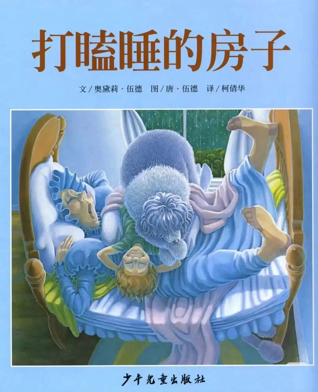 在一个下着绵绵雨的、让人昏昏欲睡的午后,有一座打瞌睡的房子。在这座房子里,每个人都在睡觉……老奶奶、小孩、狗、猫等动物的形象都非常的具像化,通过“叠罗汉”式的情节推进,画面也变得越来越拥挤和滑稽,重复累加的语言和情节,制造出一种强烈的节奏感和预期感,最后的“大爆发”则带来了十足的幽默效果。